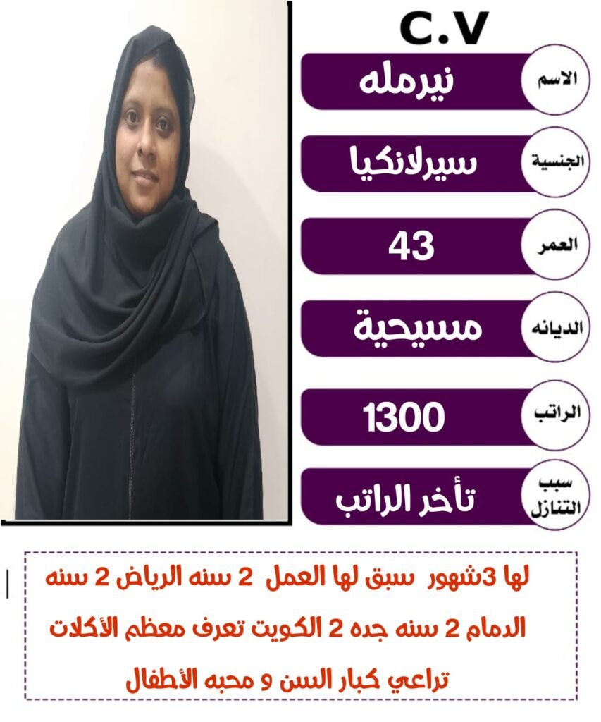 متوفر لدينا ضمان خبرة الخادمة في تقديم الخدمات المنزلية