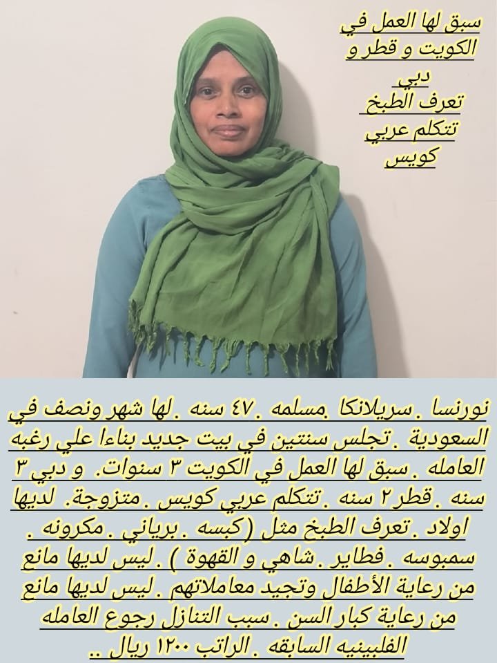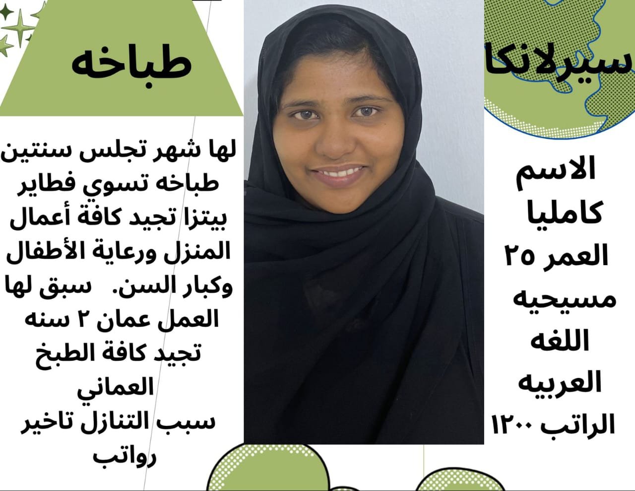 خادمات مدربات باحتراف: لدينا خادمات من جنسيات متعددة بخبرة عالية في النظافة، الطبخ، رعاية الأطفال، وكبار السن. 🔹 خدمة حسب احتياجك: اختاري عدد الساعات أو الأيام أو اشتراك شهري كامل بأسعار تناسب ميزانيتك. 🔹 أمان وموثوقية: جميع الخادمات بوثائق رسمية وفحص طبي وتحت إشراف مباشر. 🔹 استبدال الخادمة مجانًا: في حال لم تكن راضية، يمكنك استبدالها بدون أي رسوم إضافية. 🔹 التزام كامل بالمواعيد: نحرص على الوصول في الوقت المحدد وتقديم الخدمة بالجودة المطلوبة.